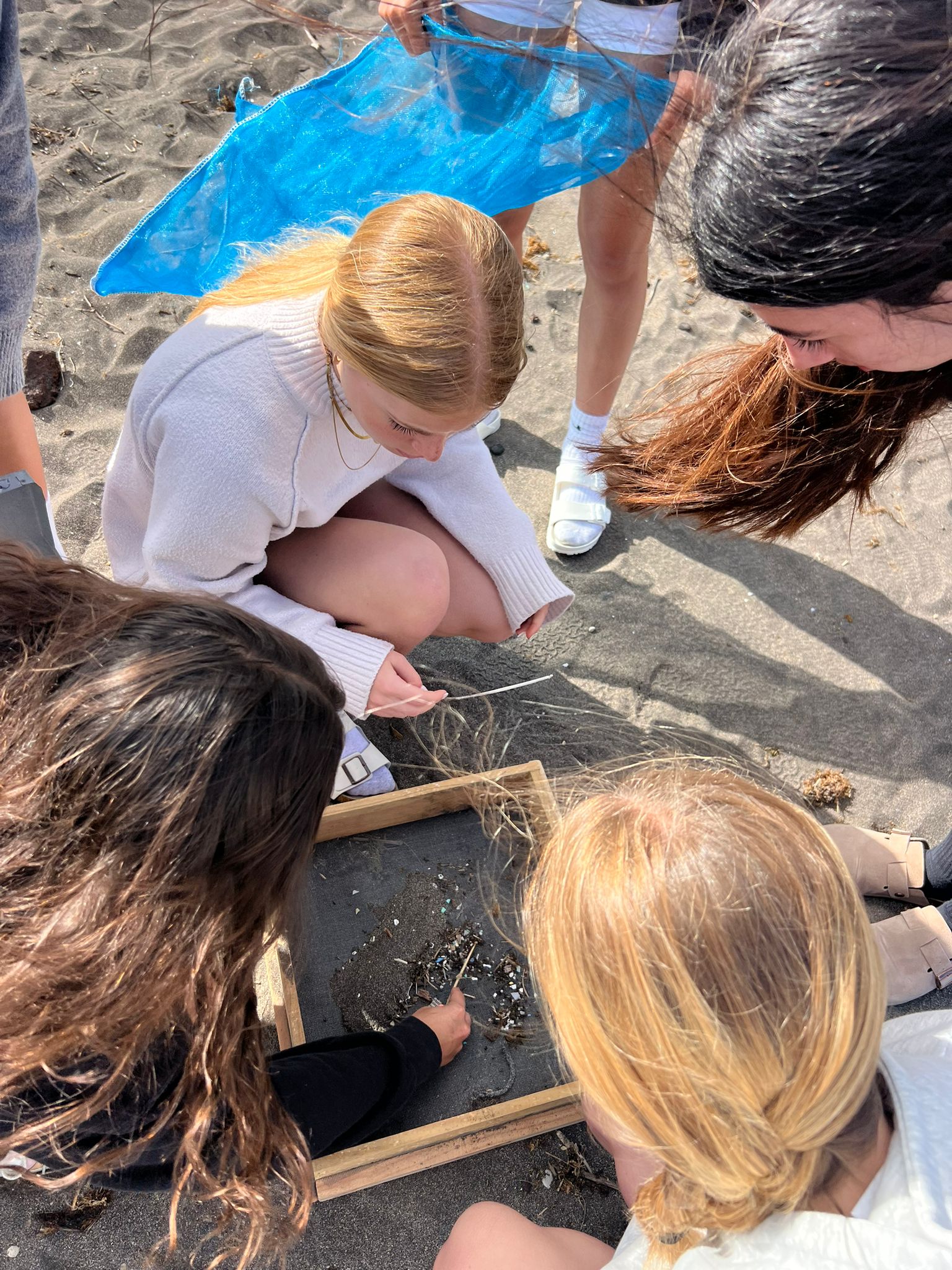 Os alunos participaram também uma limpeza de praia, acompanhados de técnicos especializados, onde perceberam que a realidade do lixo marinho, particularmente dos micro-plásticos, «é muito mais evidente no meio do Atlântico do que na Ria Formosa».