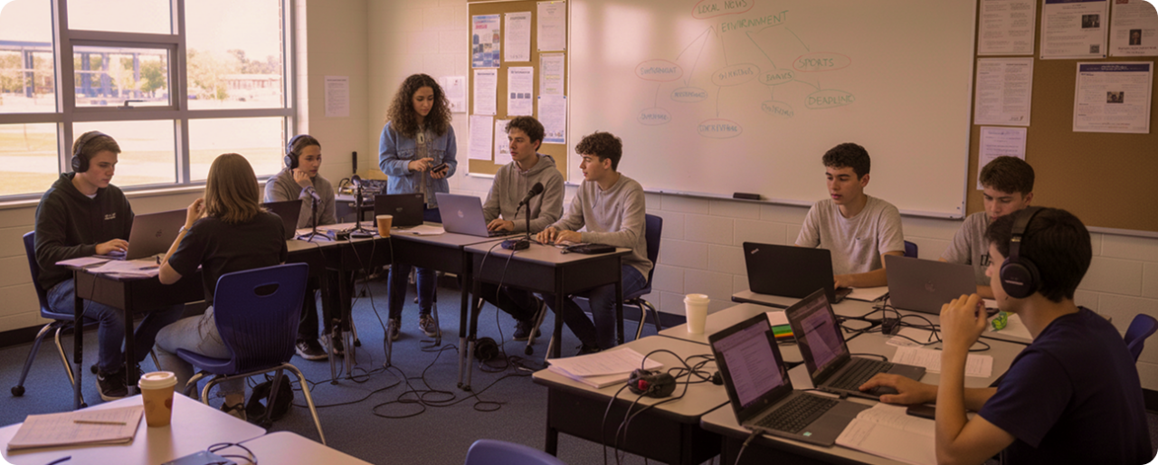 Trabalhamos em parceria com escolas secundárias do Algarve, professores e jornalistas profissionais do Sul Informação, para oferecer formação, recursos e uma plataforma de publicação que permite aos jovens desenvolverem as suas competências de escrita, pensamento crítico e cidadania ativa.